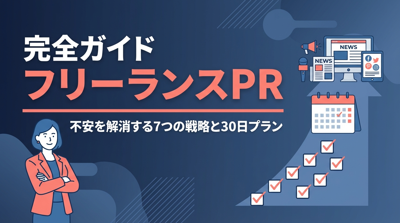より詳しいPR戦略の全体像は「【2026年版】予算ゼロでもメディア露出!個人事業主・フリーランスが成功するPR戦略は「仕組みが9割」」で解説しています。SNSとPRの連携については近日公開の「SNSとPRの連携戦略:個人事業主が実践すべき情報発信の最適化(記事No.11)」で、情報発信の母艦となるオウンドメディア構築は「個人事業主のオウンドメディア戦略:PRと連携する情報発信基盤(記事No.16)」で詳しく解説予定です。また、プレスリリースの具体的な作成方法は「個人事業主のプレスリリース:記者の目に留まる配信戦略(記事No.8)」で、記者との関係構築は「個人事業主のメディアリレーション:記者との関係構築7つのステップ(記事No.12)」で、それぞれ実践的なテクニックをご紹介します。成功事例の詳細は「フリーランス広報で成功する7つの秘訣:仕事が途切れない人の共通点(記事No.24)」で確認できますので、ぜひ併せてご覧ください。