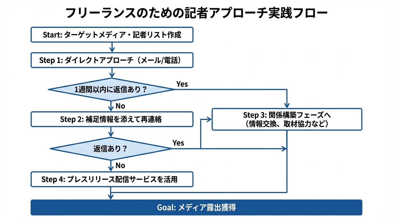 この段階的アプローチは、無名のフリーランスでも再現可能な方法論です。地域メディアは常にネタを探しており、反応が得やすい。そこで得た「○○新聞に掲載」という実績は、次の業界誌への売り込み材料になる。業界誌での露出は、全国メディアへの信用の証明になる。こうした連鎖を設計することで、案件獲得が「たまたま」ではなく「仕組み」として機能するようになります。